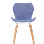 Scaun tapitat cu stofa si piele ecologica, cu picioare din lemn, Kai-277 Albastru Deschis / Alb / Natural, l48xA51xH76 cm